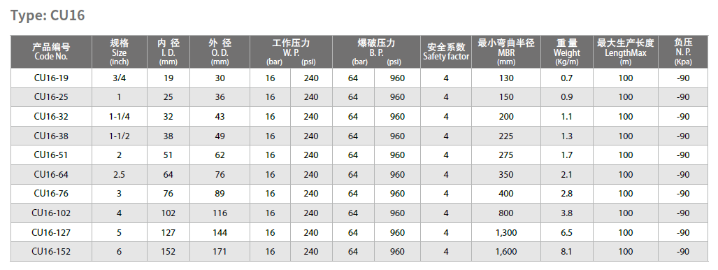 化学物品吸排管 CU16