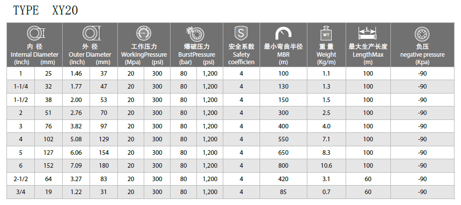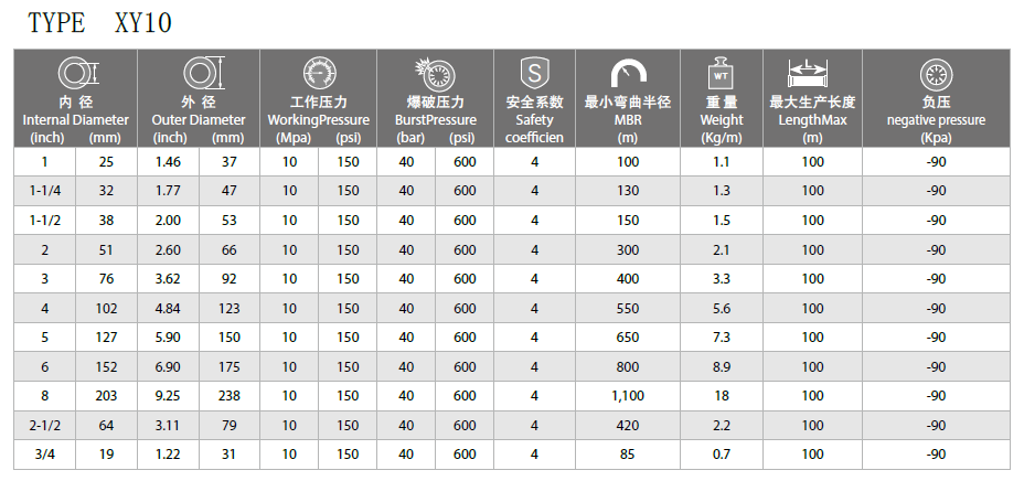 用于输送和抽吸汽油、柴油、芳烃含量达到 50% 的燃料油、海水、淡水、泥浆、空气,和一般用途。