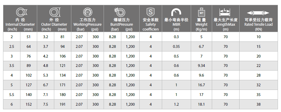 • 产品用途: 用于海工平台海水提升输送系统,软管连接海水提升绞车潜水泵,软管在承受自重的同时还可以承受潜水泵的长期重力载荷,潜水泵通过软管收放来提升收取海水,可以省掉辅助吊装系统。