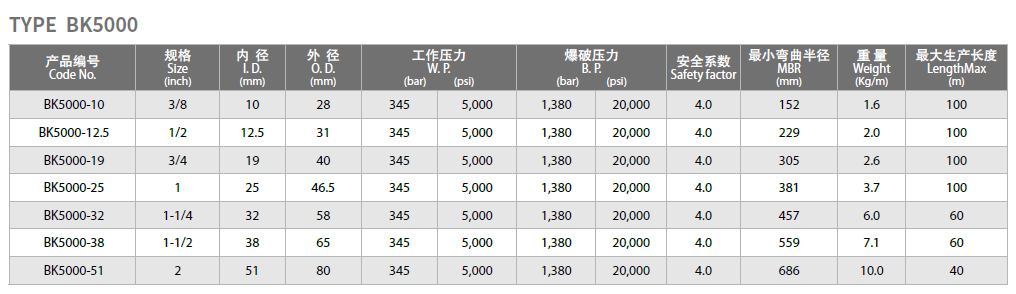 立即在线咨询• 产品用途: BOP 软管主要用于防喷器液压控制,操作压力5000PSI,并且可直接暴露在704℃火焰里超过5 分钟,可以确保控制系统在紧急情况下能够实现操作。